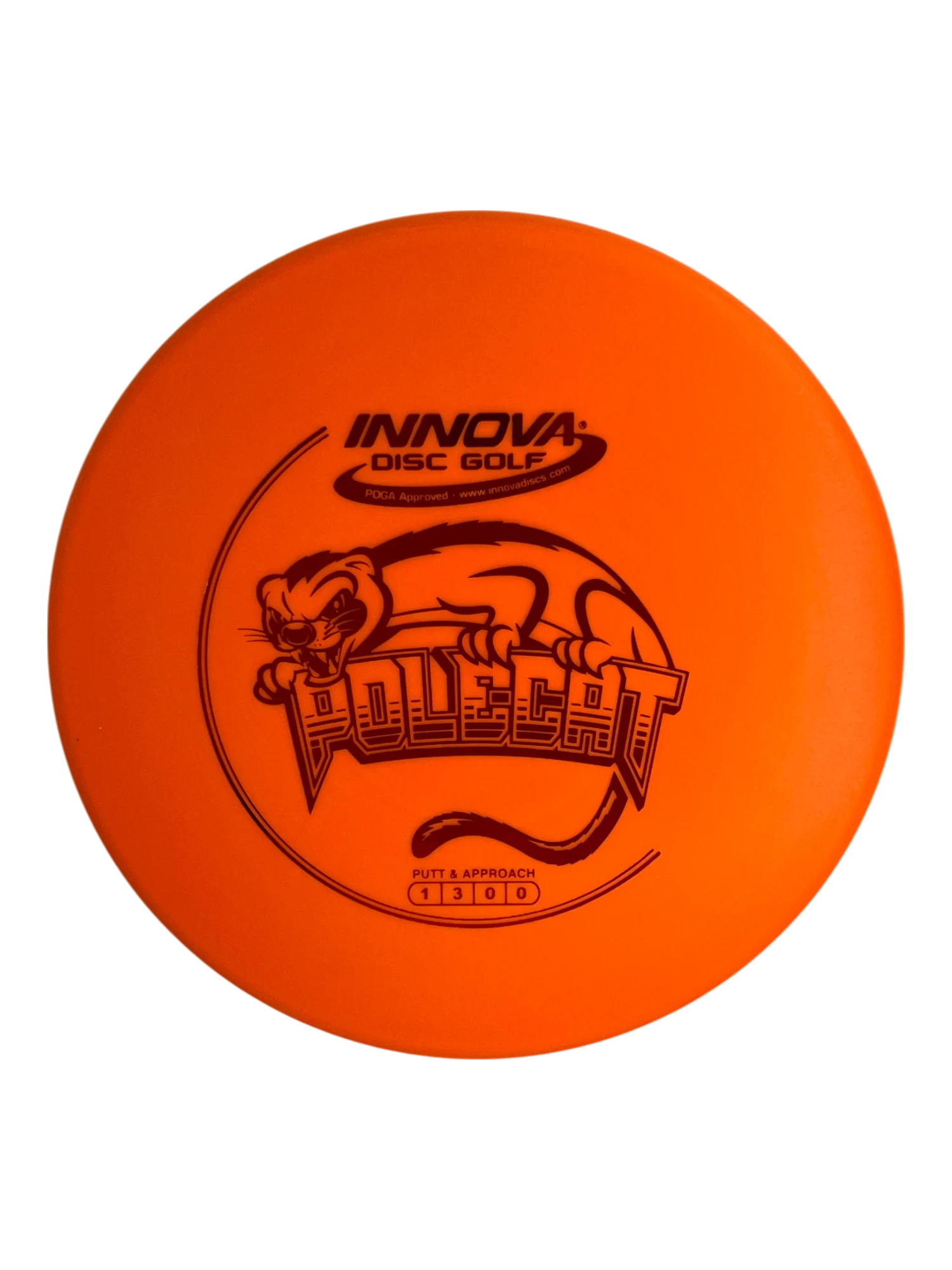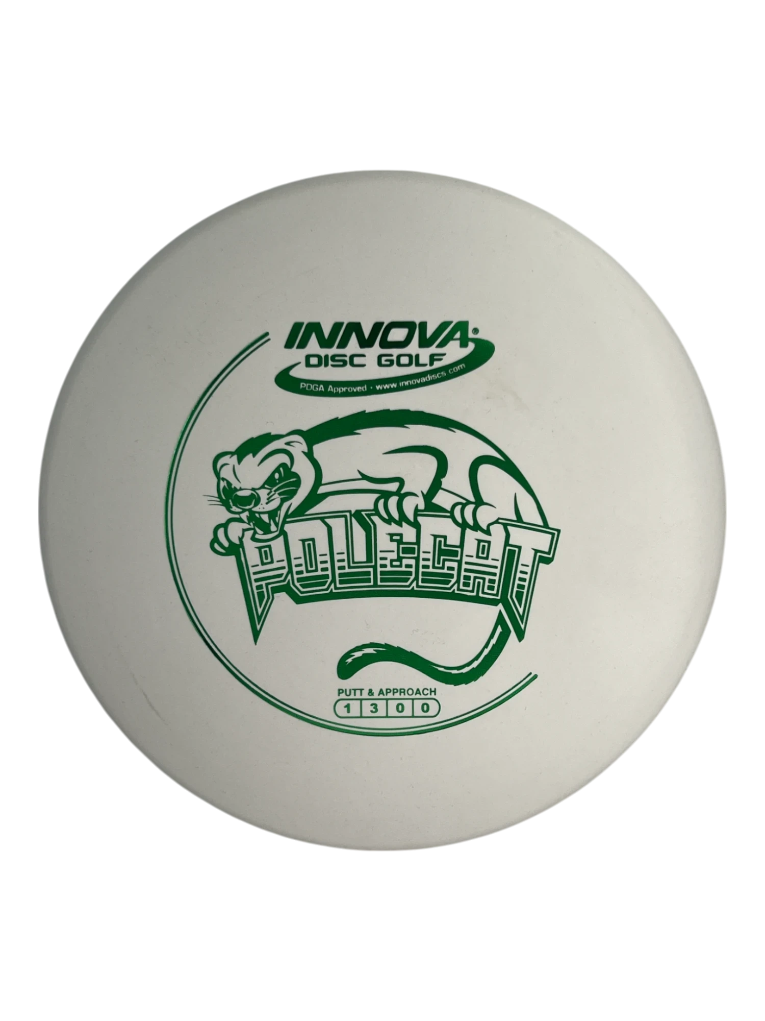 The Polecat is one of the straightest flying golf discs available. This isn’t a fast disc (speed rating of 1), but it will stay on the course better than almost any other disc. This is a tall putter (2.3 cm) with a deep rim. The feel of the putter is comparable to a small frisbee made for playing a game of pass, and this feel is preferable for some players who are transitioning to disc golf.